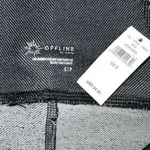 AERIE OFFLINE Ribbed 7/8 Legging Small High Rise Black Gray Compression Gym NWT