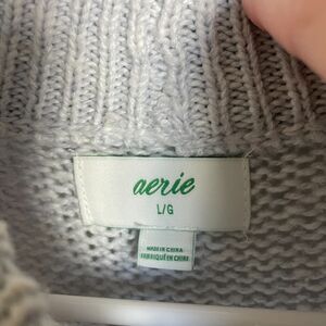 AERIE OH-SNOW-SOFT MOCK NECK SWEATER color block yellow and grey
