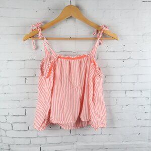 AERIE ORANGE & WHITE STRIPE BABYDOLL CROPPED TOP WITH SHOULDER TIE DETAIL SIZE S