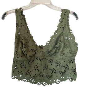 AERIE Olive Lace Forest Fairycore Bralette Crop Top Sz Lg