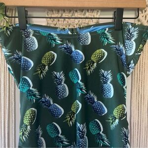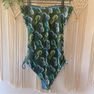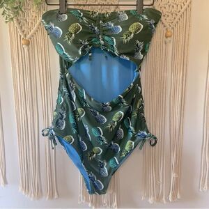 AERIE One Piece Full Coverage Ruched Cut Out Pineapple Swimsuit Large Long