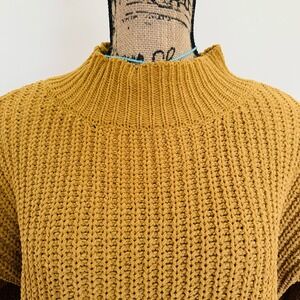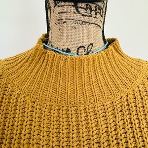 AERIE Oversized Chunky Golden Mustard Yellow Chenille Cozy Mock Neck Sweater S