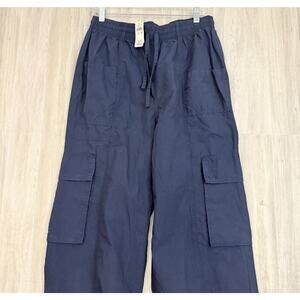 AERIE Pants Women's Medium High Waisted Go-For-It Baggy Cargo Navy Wide Leg