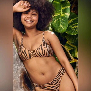 AERIE Pique Animal Print Knot Front Scoop Bikini Top - tiger print size XS. EUC. Matching high waist cheeky bottoms also available on my page! Bundle both to save.