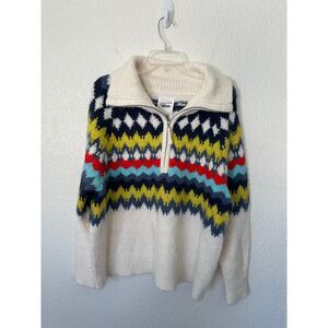 AERIE Quarter Zip Sweater Fair Isle Cozy Soft Thick Chunky Nordic Size Medium