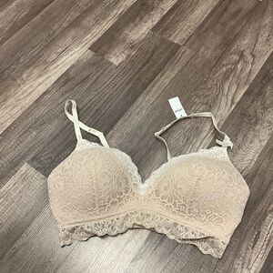 AERIE REAL HAPPY WIRELESS LIGHTLY LINED LACE BRA SIZE 36D IN NUDE NWT