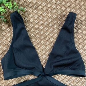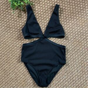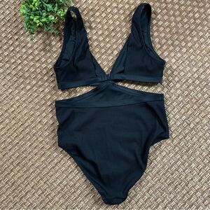 AERIE Ribbed Mix Crossover Cutout One Piece Full Coverage Swimsuit Black Large