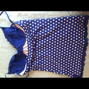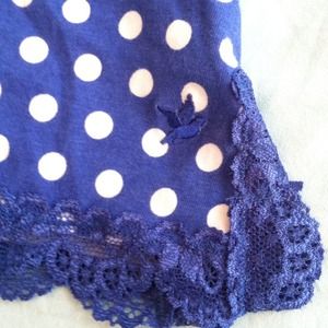 Lace at the top and bottom, built in bra, super cute! Only worn once! Fits A cup sizes, too small for B.