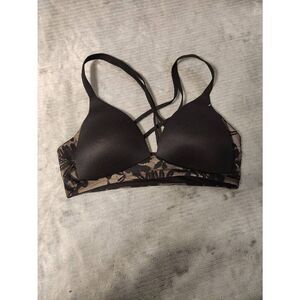 AERIE SIZE 32C Sunnie Wireless Strappy Black Beige Floral Bra