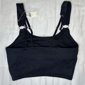 AERIE Seamless Ring Built in Shelf Bra Longline Black Bralette MEDIUM NWT