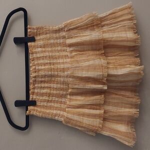 AERIE Striped Smocked Tiered Fringed Lined Mini Skirt