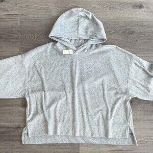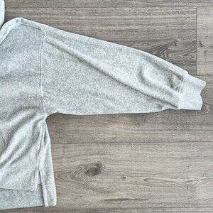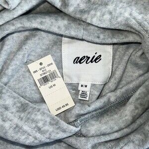 AERIE Velour Cropped Hoodie Medium Heather Gray Relaxed Fit Y2K Retro Casual NWT
