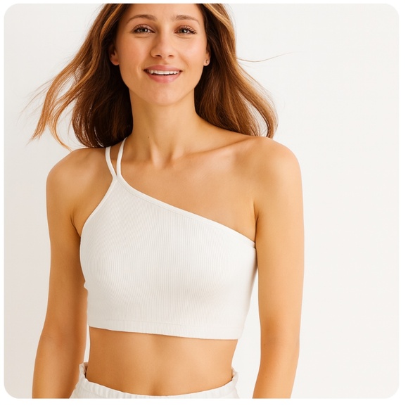 AERIE White One Shoulder Lined Ribbed 2 Strap Bralette
