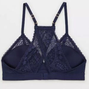 Delicate, comfortable, and effortlessly pretty, this Aerie wireless lace bra features an elegant paisley lace overlay in a rich navy blue that feels elevated yet wearable. Designed without underwire for all-day comfort, it has adjustable straps for a personalized fit and a feminine keyhole back detail that makes it just as beautiful from behind. Perfect for everyday wear when you want something soft, supportive, and stylish. Brand new with tags.