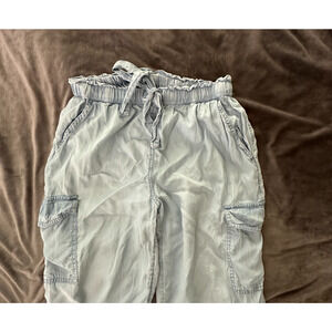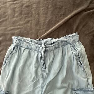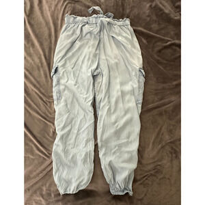 AERIE Womens Pants Medium Light Blue Chambray Cargo Jogger Drawstring Baggy Boho
