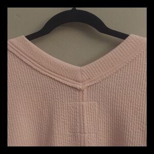 AERIE Wonder Texture V-Neck Pullover Oversized Sweatshirt In Light Pink in brand new condition