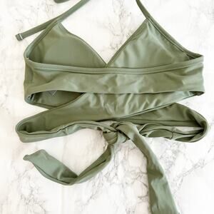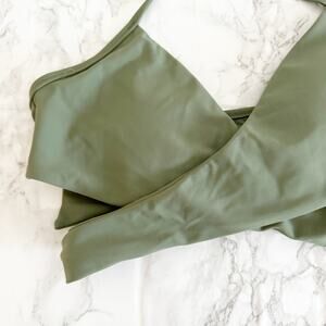 AERIE Wrap Halter Bikini Top Olive Green Small S