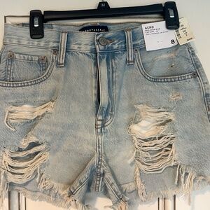 Women's size 8 90's high rise cut off denim shorts, medium wash, soft denim material (premium air denim).