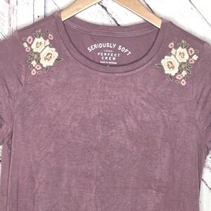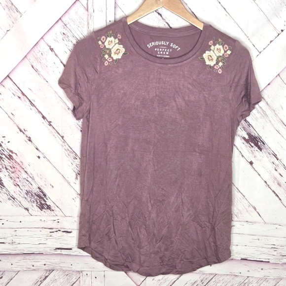 AERO Embroidered Floral Light Mauve Pink Tee