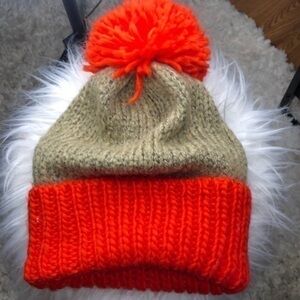 AERO POM HAT | Aeropostale Red + Tan Knit Pom Hat OS