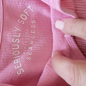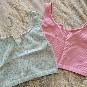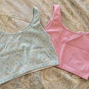 Super cute, soft sports bra style ribbed crop top tanks, set of two. Lots of stretch.