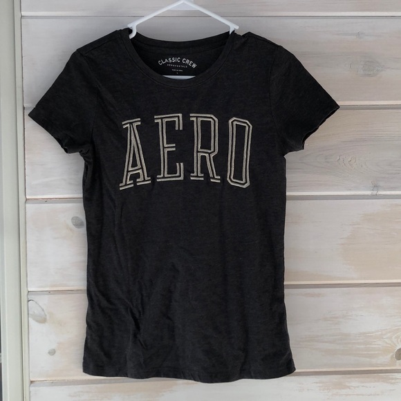 Aeropostale classic crew t shirt. Like new. Color is a dark gray with embroidered stitching of gold thread. No rips or stains. Size Large. 17 1/2” P2P. 24” shoulder to bottom.