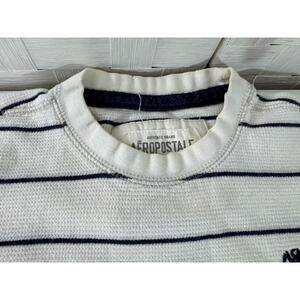 The product is a 100% cotton long sleeve shirt by Aeropostale in size M. It is a white shirt suitable for both men and women, featuring the brand's logo on the front. This Y2K shirt is a regular fit and perfect for those looking for a comfortable and classic addition to their wardrobe. Please note that this item is being offered as a final sale, making it a great opportunity for buyers to get a quality piece at a discounted price...25.5"T x 18.5" Pit to Pit x 26" Arm