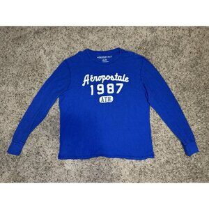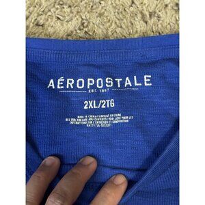 AEROPOSTALE Blue Long Sleeve Thermal Pullover Crewneck Shirt Y2k 90s College 2XL