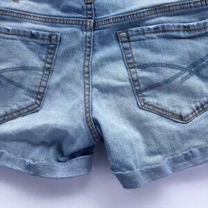 AEROPOSTALE LIGHT WASH DISTRESSED DENIM MIDI SHORTS