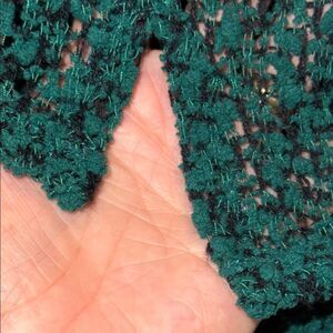 This stylish blouse from Aeropostale showcases a vibrant green hue with elegant ruffled detailing along the sleeves. Designed with a long sleeve silhouette, it offers a sophisticated touch to any ensemble. The lightweight fabric ensures comfort and versatility for various occasions. This is so pretty, sheer. Mixed with Teal green with black. Very stretchy, excellent condition
