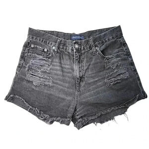AEROPOSTALE Mom Short Black High Rise Ripped Jean Shorts Curvy Distressed SZ12