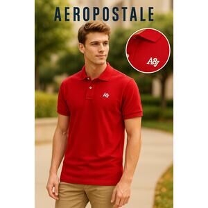 AEROPOSTALE Red Polo Shirt Sz M Cotton Classic Short Sleeve Casual Preppy Golf