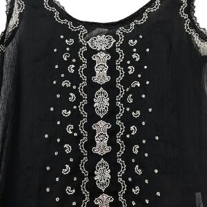 AEROPOSTALE Sheer Embroidered Black Tank Top XS