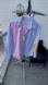 Stylish button-up shirt with pink, blue, and yellow stripes. Perfect for casual wear.