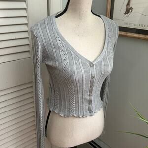 AEROPOSTALE Sweater Womens Medium Gray Cardigan Plunging V-Neck Fitted Retro Y2K