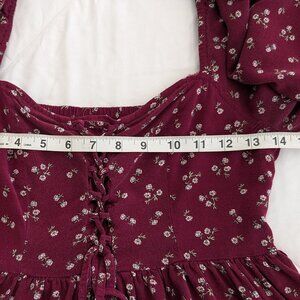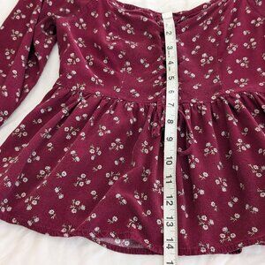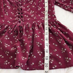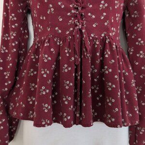 AEROPOSTALE Top Women's S Burgundy Floral Corset Babydoll Pullover Long Sleeve