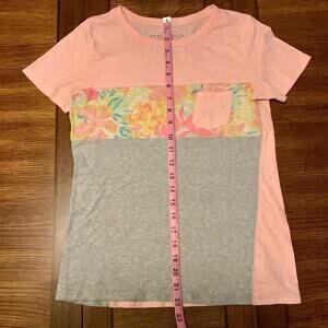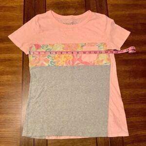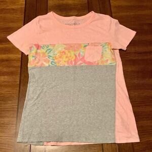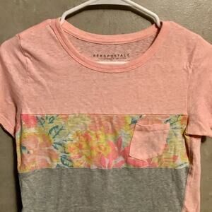 AEROPOSTALE Tropical Floral Color-Block Pink Gray Shirt Size Small