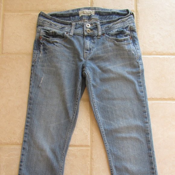 AEROPOSTALE WOMEN'S JUNIOR'S SIZE 1/2 CAPRIS DENIM CROPPED BLUE JEANS DISTRESSED