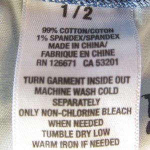 AEROPOSTALE WOMEN'S JUNIOR'S SIZE 1/2 CAPRIS DENIM CROPPED BLUE JEANS DUNGAREES DISTRESSED STRETCH. Fabric: 99% Cotton, 1% Spandex. Medium blue distressed denim. 6 pocket jeans capris. Zip front fly with intact & working metal zipper. 2 riveted pewter colored metal buttons say "AEROPOSTALE*"twice around the circumference. Copper colored metal rivets on front pockets say "AEROPOSTALE 1987" around the circumference. 5 belt loops and back yoke. The pictures show the exact item you are purchasing. ** Color may be slightly off due to monitor color setting/flash of camera **.