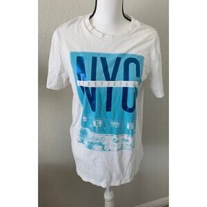 AEROPOSTLE NYC SHORT SLEEVE T-SHIRT, WOMENS, LARGE, WHITE, BLUE NYC GRAPHIC