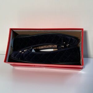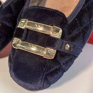 AEROSOLE NIB Sherbet Quilted Navy Velvet Gold Buckle StitchN'Turn PreppyFlats 10