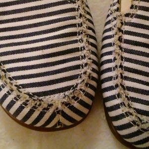 🔵A really nice pair of slip on shoes. Has blue & white stripes. Would look great w/capri's or a blue denim shirt. SIZE: 10 M. 🔵