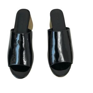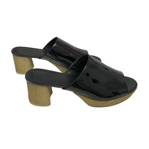 AEROSOLES Black Faux Patent Leather Siz 13 Canie Heeled Open Toe