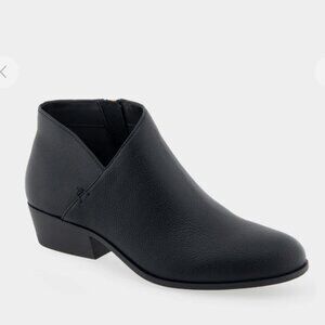 Chic black leather ankle booties. Comfortable and stylish for everyday wear.