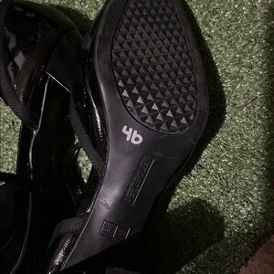 Chic black heels with a sleek strap design. Ideal for versatile styling.