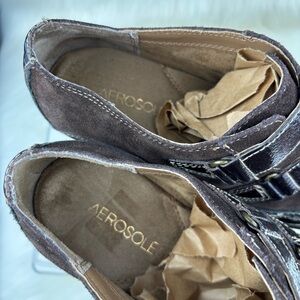 AEROSOLES Black Wedge Loafers with Velcro Adjustable Straps