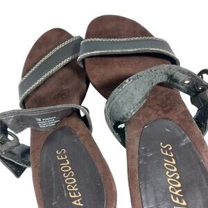 AEROSOLES! ESPRESSO BROWN GENUINE LEATHER CONTRAST STITCHED SANDALS! SZ 7M