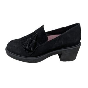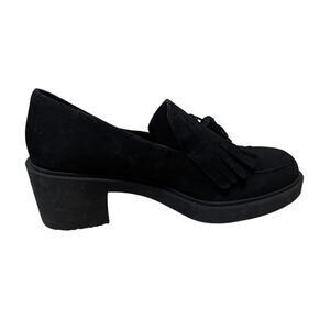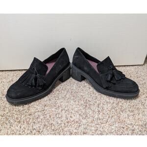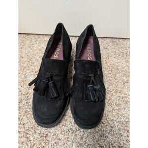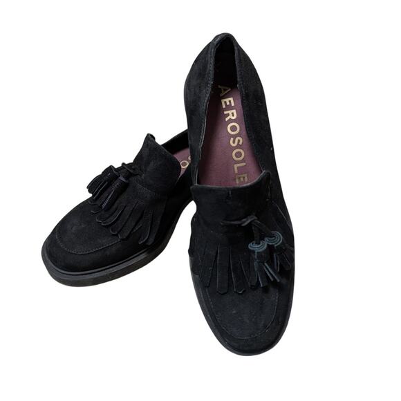 AEROSOLES GIBES Black Suede, tasseled Loafer/Women's Dress Shoes/pumps; size 8; Slight Platform.