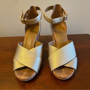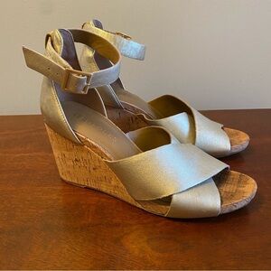 AEROSOLES Gold Wedge Sandals with Crossover Straps