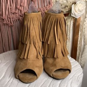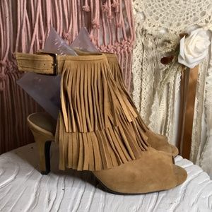 AEROSOLES HEELREST “Alamode” Tan Leather Fringe Peep Toe Heel Size 6